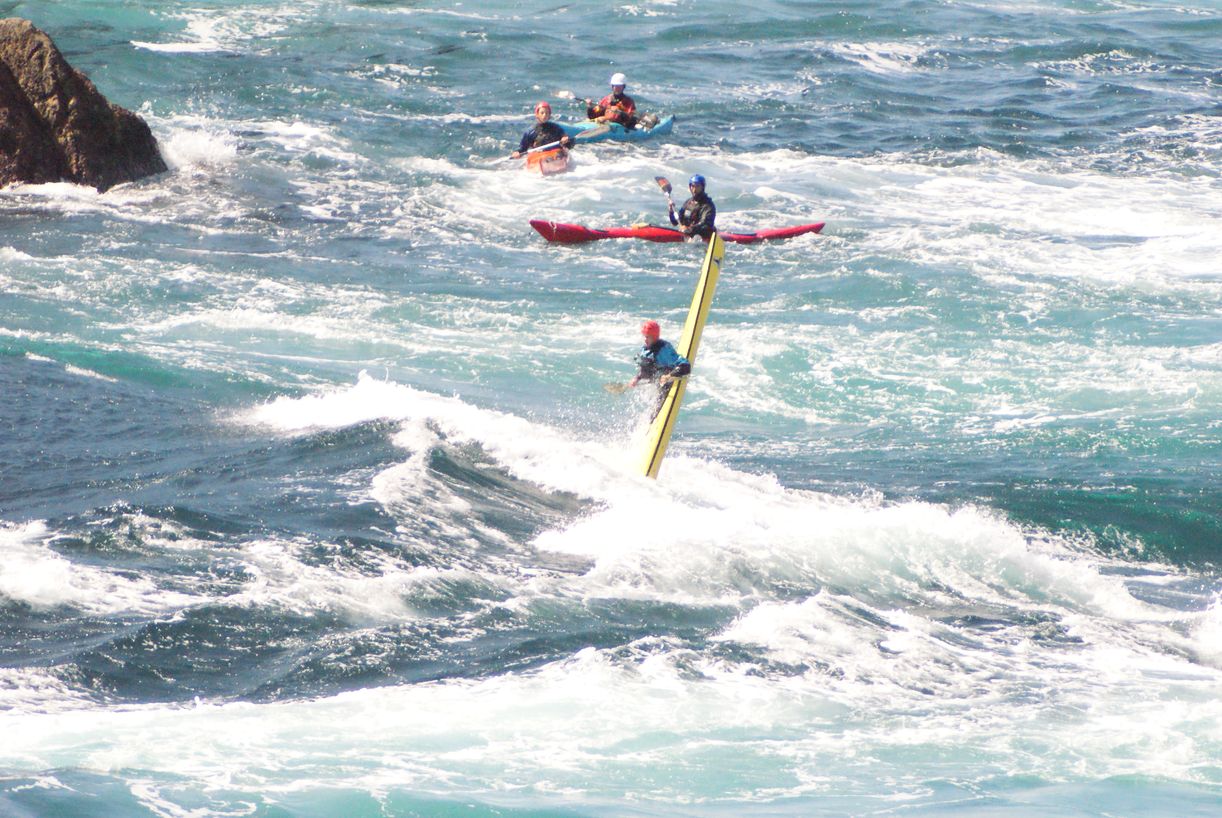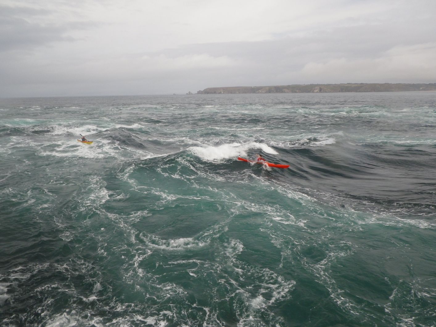 Pour les personnes sachant esquimauter il est possible de vous accompagner dans une sortie par fort coefficient de marée pour affronter les vagues particulières du Raz de Sein.