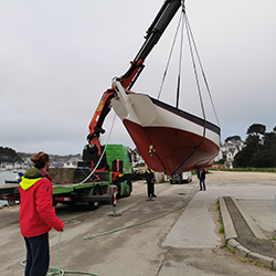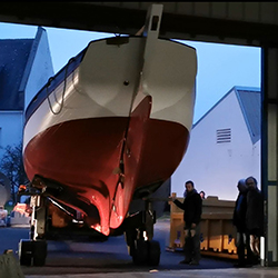 Le 2 février, nous avons ressorti le bateau de l’eau pour le ramener sur son lieu de naissance, dans le hangar des ateliers Jean Moulin.