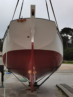 Le bateau a été mis à l’eau (de façon non officielle) jeudi dernier et nous l’avons convoyé vers Audierne vendredi matin.